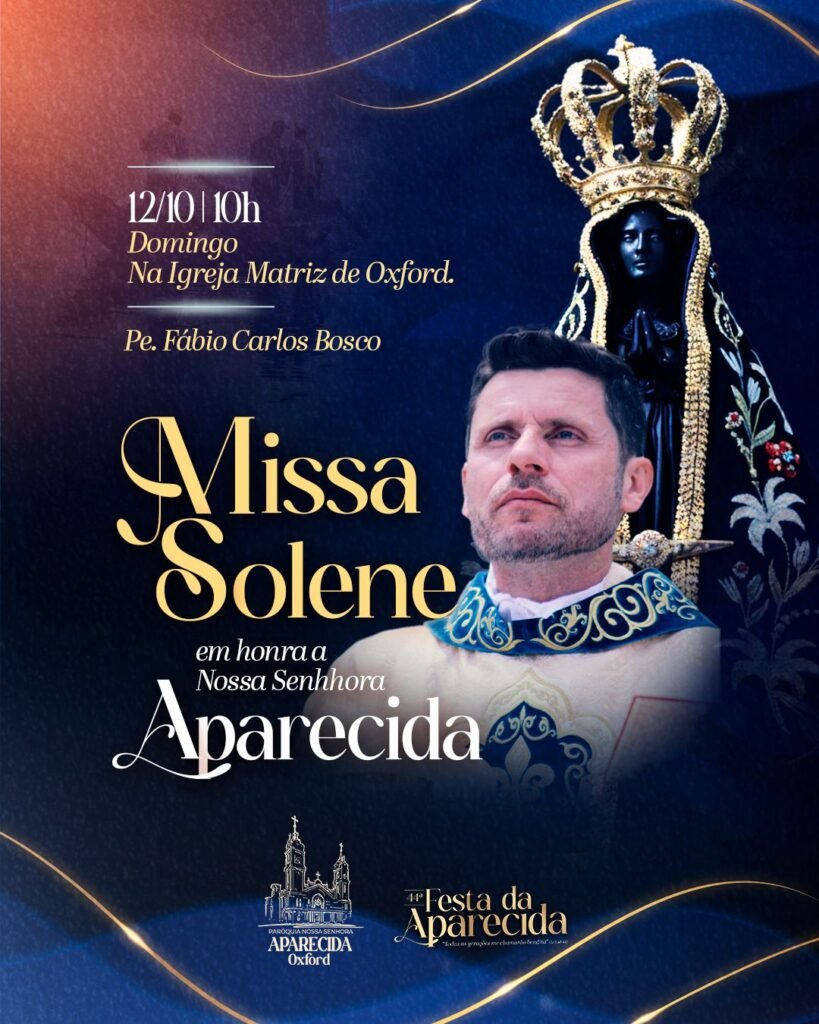 De 03 a 12 de outubro, venha celebrar conosco a Festa da Padroeira Nossa Senhora Aparecida, aqui na Paróquia Nossa Senhora Aparecida de Oxford.